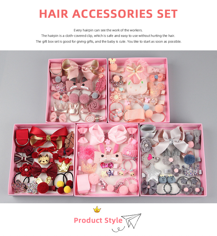The whole box includes 18 pcs clips, ties, barrettes, hairpins with unique design, offering variety of options.