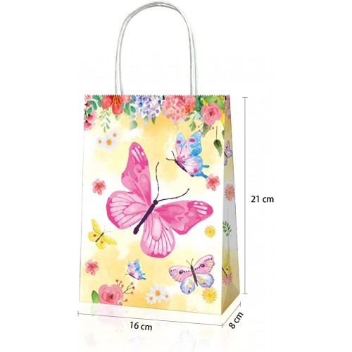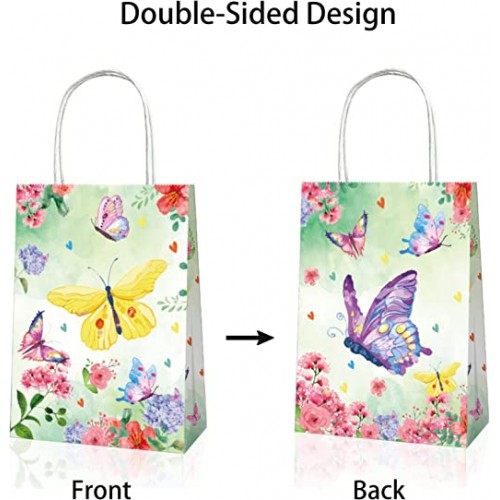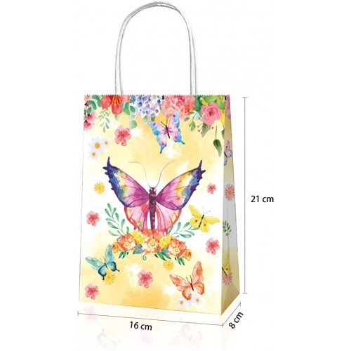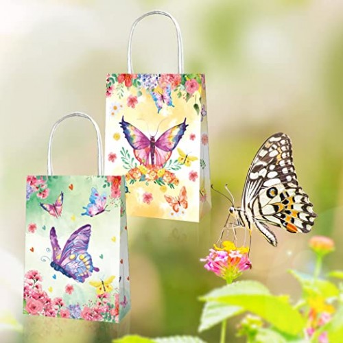 - (SIZE and MATERIAL)Butterfly Party gift treat bags are made of quality thick white kraft paper, reliable and durable to use. Size 22*12*8CM, enough space to hold small candies.