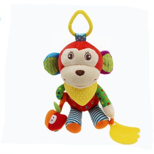 Soft Baby Push Monkey Toy Rattles, Teether Rings Early Educational Toy