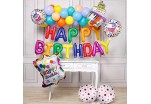 • (PACK INCLUDES)1xrainblow HAPPY BIRTHDAY foil balloon,4x HAPPY BIRTHDAY round balloons,1x HB cake balloon,1xHB rectangle balloon,5x tiffany blue balloon,5x light blue balloon,5x light purple balloon,5xlight orange balloon,5xyellow balloon,5xlight orange balloon,1x balloon string