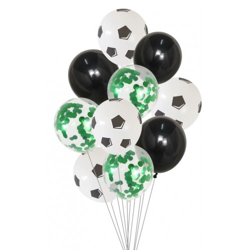 - (PACK INCLUDES) 32 Inch Number Balloon x1, 18 Inch Football Balloon x1, Green Confetti Balloon x3 , Latex Football Balloon x3, Black Dot Balloon x4