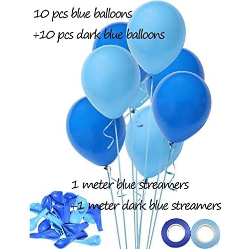 • ( PACK INCLUDES )* One Blue Banner, * One Glitter Cake Topper Double Sided, * One Blue Crown , * Dark blue Balloons - 10 QTY , * Sky Blue Balloons - 10 QTY, * 1 Meter Blue Streamers , * 1 Meter Blue Streamers