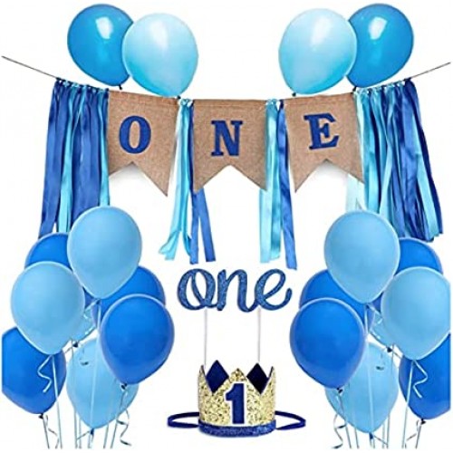 First Birthday Party Decoration, Birthday Decoration set for Boys, Number 1 Banner, Baby Crown , Cake Topper, Balloons, Party supplies kit, quality decoration set boys