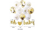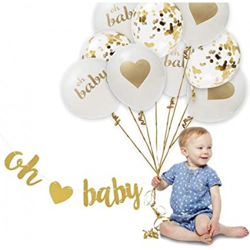 - (PACK INCLUDES)*OH Baby pull the flag x1 *12inch gold sequined alloon x10 * 12inch love balloons x10 *12inch OH Baby balloon x10 *Ribbon x3 *Dispensing x1 *Straw x1