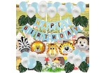 Wild Animal Jungle Theme Party Set, Birthday Party Decoration set, Blue and White Balloons, Decoration set boys & girls