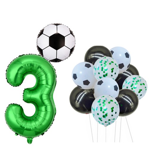 • (PACK INCLUDES) 32 Inch Number Balloon x1, 18 Inch Football Balloon x1, Green Confetti Balloon x3 , Latex Football Balloon x3, Black Dot Balloon x4