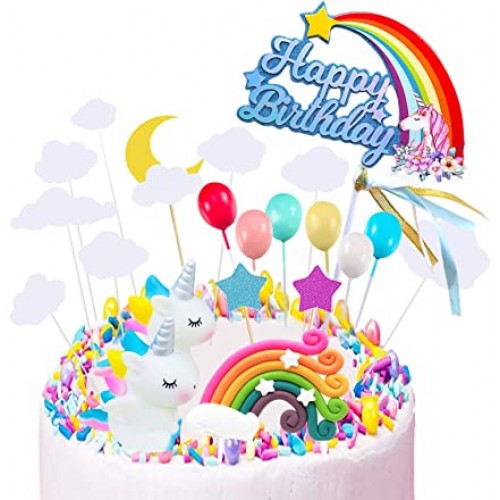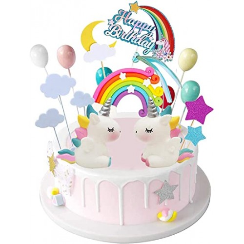 - (PACK INCLUDES) * Unicorn x2 * Rainbow x1 * Balloons x1 * Cloud x1 * Moon x1 * Stars x1 * Happy Birthday flag x1