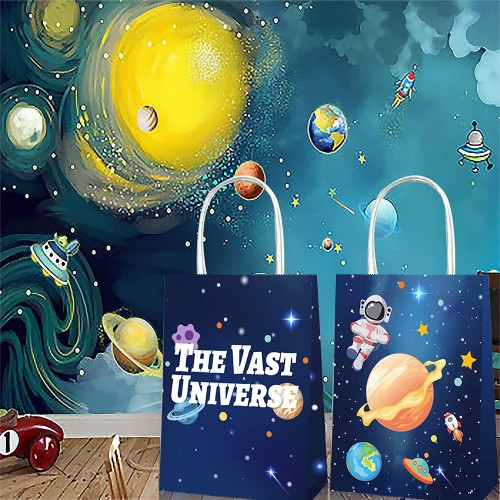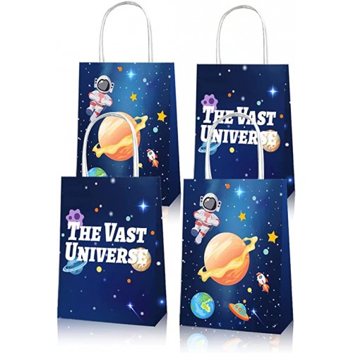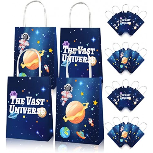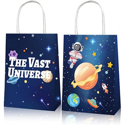 - (PACK INCLUDES) 12 pieces paper Astronaut Space Party favor bags Double-sided design with Space Universe patterns make them look novel and attractive