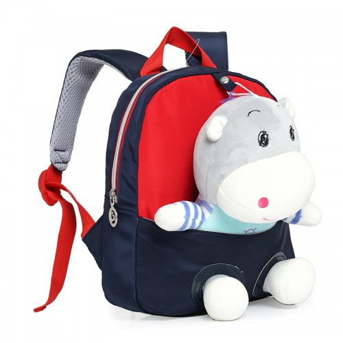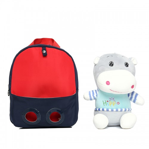 Hippo Backpack with Plush Toys for Kids (Blue-Red Color).