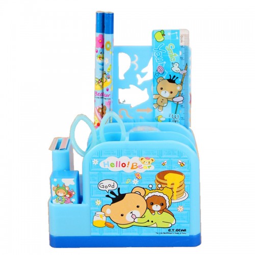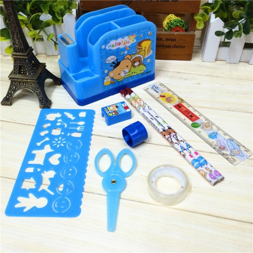 2*pencils+1*ruler+1* scissors+1*pen holder+1*sharpener
