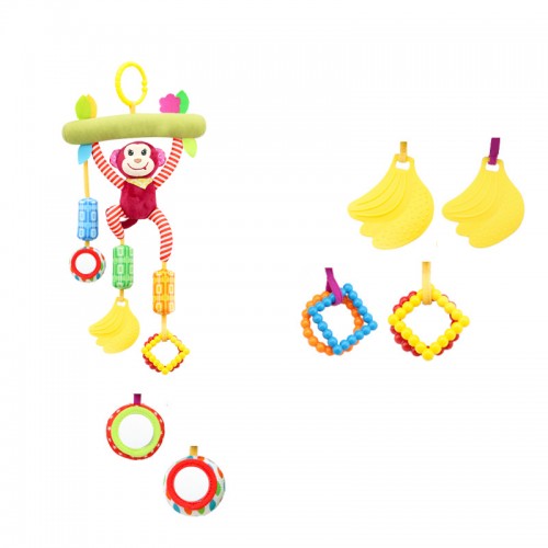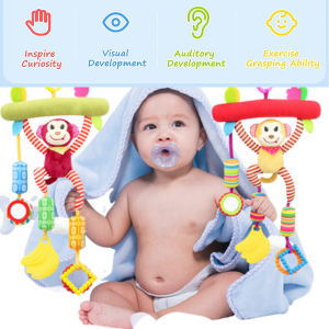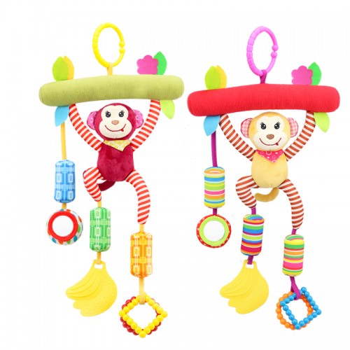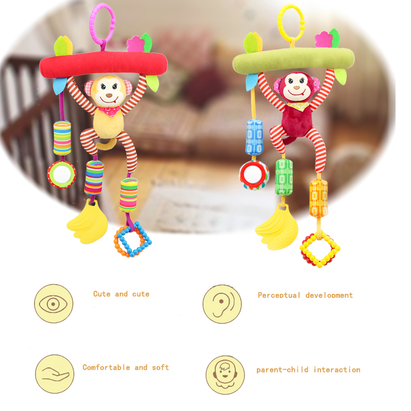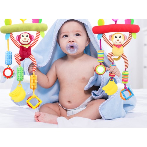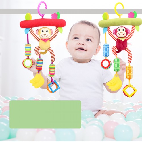 A Wonderful partner for kid's happy growth with early educational Toy. Cartoon stuffed Monkey design Play toys for baby car seats, Strollers, Cribs, Swings and travel systems.