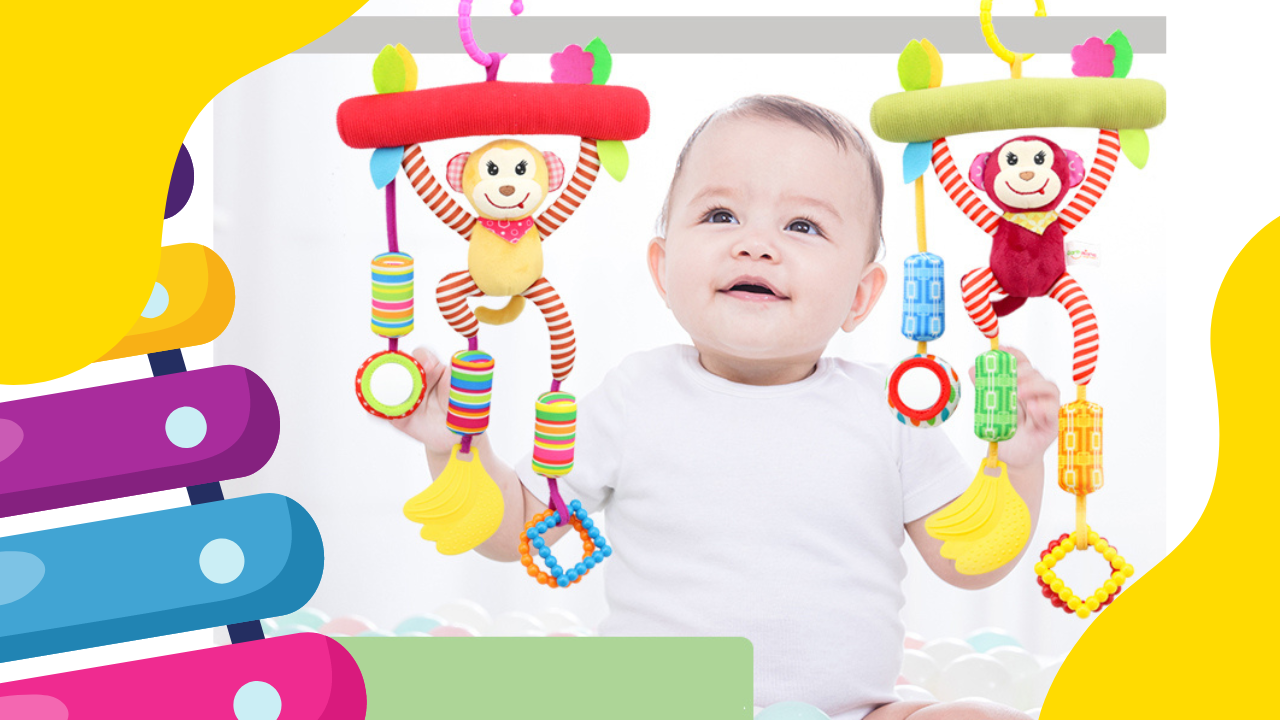 With 3 hanging toysThe hanging toys can be separated and cleaned. Pressing or Shaking the hanging toys can make a sound |