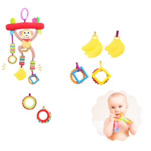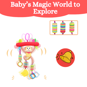 - [Kids Early Development]Beautiful and Colorful Monkey design, and it will make a soft and sweet sound when pressed, which can not only attract the baby's attention, but also exercise the babys hearing. At the same time, there are accessories hung on each ring, which can exercise the baby's grasping ability