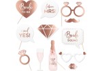 Rose Gold Wedding Photo Booth Props for Bridal Shower, Bachelorette Party, Engagement and Selfies for Bride to Be 12Pcs