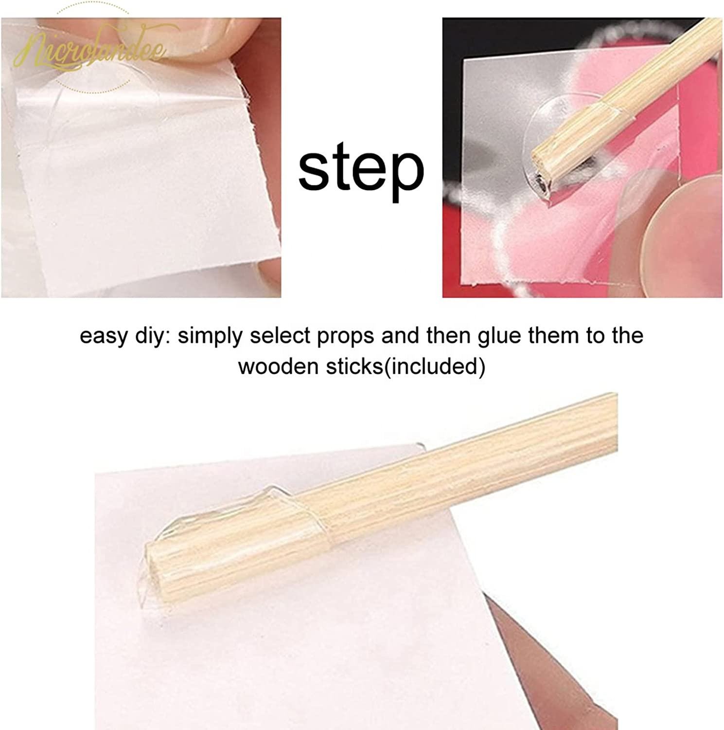 - DIY ASSEMBLE - Simply attach the included wood sticks to each photo booth props using the pearl beads glue tabs(usage refer to the image), Then hold the prop in front of your face, over your head, etc. take a photo what you want anytime, anywhere.