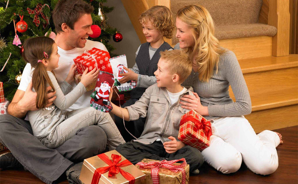 - Happy Christmas With the joy of holiday, Christmas is coming, Xmas stockings can be indispensable. They will look definitely great when hanging to Christmas tree, bed, stairs, the fireplace, etc. Let the whole house full of festive atmosphere. Bring the joy of Christmas to your home.