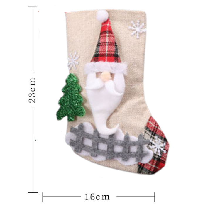 - Christmas Decorations This Christmas stocking has a large top opening and a spacious interior that is perfect for filling with a lot of gifts, goodies, candy canes, gift cards, chocolates, toys, little treats and other stocking suffers. Kids will enjoy a stocking full of gifts. Size: 23cm x 16cm.